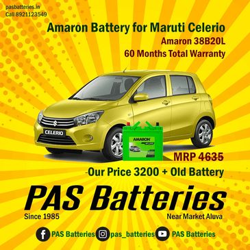 Don't compromise on the performance and reliability of your Maruti Celerio. Choose a high-quality Amaron battery from our extensive selection and enjoy worry-free driving. Browse our website to find the best maruti celerio battery price and the perfect battery for your vehicle. We offer convenient online ordering and reliable delivery to Aluva, Kerala, India. Power your drive with Amaron – the trusted choice for your Maruti Celerio!